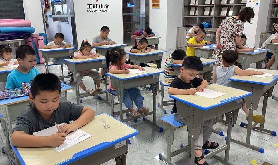 每天早上,暑托班的孩子们都会准时的跟随父母来到班级教室,检查体温、签到登记后开始一天的学习生活。