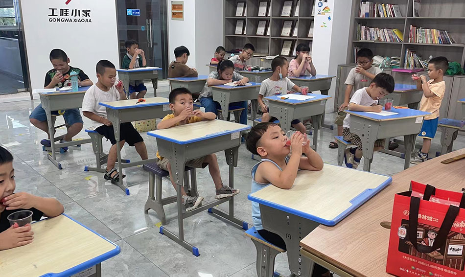 “夏日护禾”暑假托班不仅丰富职工子女的假期生活,还让其无后顾之忧、安心上班。而我们的小朋友们在托管期间,尊敬老师,遵守纪律,年龄大的小朋友也会热心得帮助老师照顾年龄偏小的弟弟妹妹。在学习知识、了解历史的同时,也能锻炼身体,大家在这个集体里,团结友爱,开心的度过每一天。